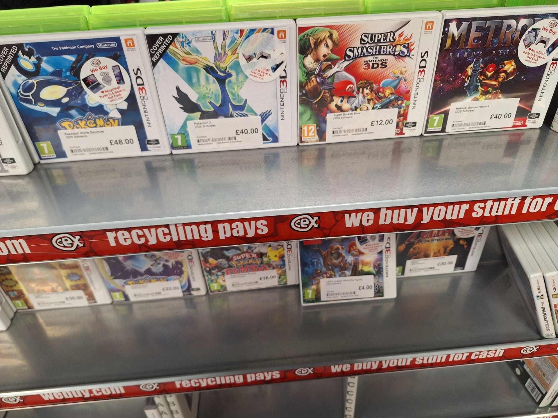 This selection of 3DS games is among the more impressive ones I’ve ever seen. It will piss me off for all eternity that they slap these stickers on the covers instead of having them tucked into the plastic but we’ll set my nerd rage aside for now. There aren’t really any rarities here per-se but I’m very glad I bought Samus Returns back in 2023, it only cost me £31 and my copy is in mint condition.